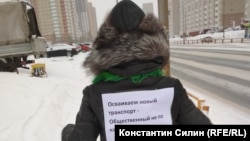 Несмотря на холодную погоду, участники акции ездят по Сургуту только на велосипедах, к спине у них прикреплены плакаты с лозунгом "Осваиваем новый транспорт – общественный не по карману". По словам протестующих, мероприятие будет регулярным до тех пор, пока чиновники не обратят на проблему внимание.
