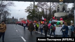В Красноярске на монстрацию пришло около 50 человек. На входе у участников проверяли надписи на плакатах сотрудники полиции. Если плакат их не устраивал – просили его убрать, сообщает корреспондент "Сибирь.Реалий".