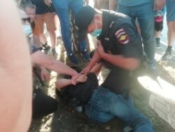 Как сообщает корреспондент Сибирь.Реалии с места событий, больше семи человек задержали. Это были те, кто задавал тон кричалкам, и кто был с плакатами. Самым первым был задержан 75-летний правозащитник Валентин Кузнецов. Его забрали в отдел, когда участники акции пошли колонной. Кузнецов хотел поехать домой, зашёл в автобус, но сотрудники в штатском вывели его на улицу и положили на асфальт. Позже патрульная машина, которую они вызвали, забрала правозащитника в отдел полиции 10. На Кузнецова оформили два протокола за участие в несанкционированном публичном мероприятии и за нарушение режима повышенной готовности. После этого его выпустили.