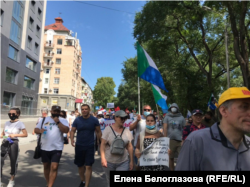 Самым популярным лозунгом на хабаровских митингах остается "Свободу Фургалу!", но в целом повестка давно вышла из региональных границ, став общефедеральной. Люди все чаще скандируют "Путина в отставку!". Сегодня участники шествия кричали "Путин – вор!", "Путина под суд!", а также провозгласили новый лозунг: "Путин, выпей чаю!".