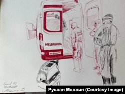 Руслан Меллин – врач в отделении челюстно-лицевой хирургии Кузбасской клинической больницы, на базе которой в период пандемии организовали ковидный госпиталь. Между сменами Руслан рисует свои рабочие будни – говорит, так легче пережить происходящее. Сразу после окончания 17-дневной смены он дал интервью Сибирь.Реалии.