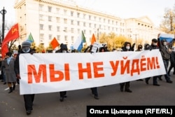 – Да он сам себя боится. А нам он тут никому не нужен. Мы мирные люди. Можем, конечно, быть суровыми дальневосточниками. Но протестуем мирно, ничего не громим, как он себе навоображал. Может, он просто сам и верит в то, что мы "горлопаны" и идем тут все крушить? – добавляет другой участник протестного шествия Андрей.