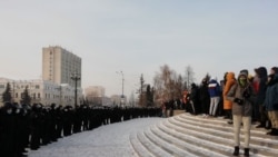На Соборной площади собрались около полутора тысяч человек, среди них очень много молодых. Несмотря на сильный мороз, никто не расходится, люди скандируют "Отравителей в тюрьму", "Путин вор", "Свободу Навальному". Напротив них стоит оцепление из полицейских.