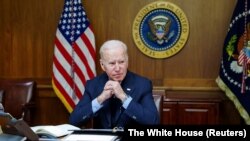 Президент Байден заявил, что российское вторжение в Украину по-прежнему возможно. По его словам, российские военные всё ещё находятся на позициях, угрожающих Украине. Их число по периметру Украины, в том числе в Беларуси, он оценил в 150 тысяч. Соединённые Штаты, по словам Байдена, пока не могут подтвердить отвод войск, о которых во вторник заявило российское Минобороны.
