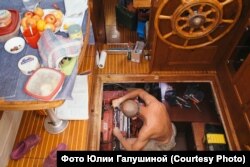 – А на капитане – ремонт двигателя, такелажа, парусов (мы их тоже чиним). Этой работы довольно много. На берегу она стоит дорого и лучше сэкономить, а в море никто не поможет. На яхте оборудованы две каюты. В носовой спят девочки, при ней есть гальюн, выглядит примерно как туалет в поезде. В нашей кормовой каюте есть санузел с душем. Между каютами расположены два салона – кухня и рубка, она же гостиная.