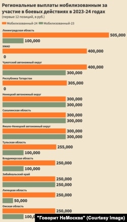 В семи российских регионах мобилизованным заплатят по 150 тысяч – в Хабаровском и Приморском краях, в Тверской, Магаданской, Амурской областях, в Чувашии и Еврейском автономном округе.