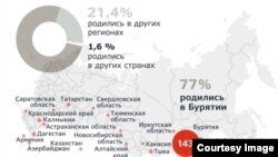 Удалось подтвердить, что в Бурятии родилось 143 из 184 погибших. При этом в столице республики Улан-Удэ только 23 человека, а 120 — в остальных районах. Всё население Бурятии — 980 тысяч человек, в Улан-Удэ проживает 437,5 тысячи. Получается, что на столицу, где живёт почти половина населения республики, приходится в пять раз меньше погибших, чем на всю остальную территорию.
